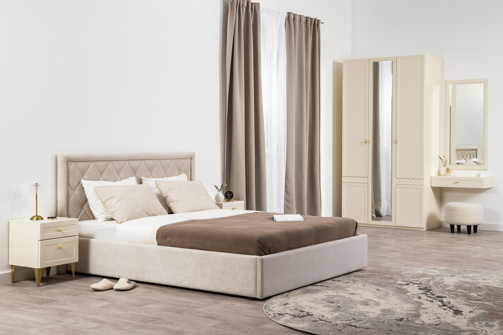 Кровать Марион — это идеальное сочетание стиля и комфорта. Элегантное изголовье оформлено стежкой в виде классической каретной стяжки, украшенной декоративными пуговицами, что придаёт изделию выразительный и утончённый вид. По всему периметру кровати проходит аккуратный валик, подчеркивающий геометрию и завершённость формы.