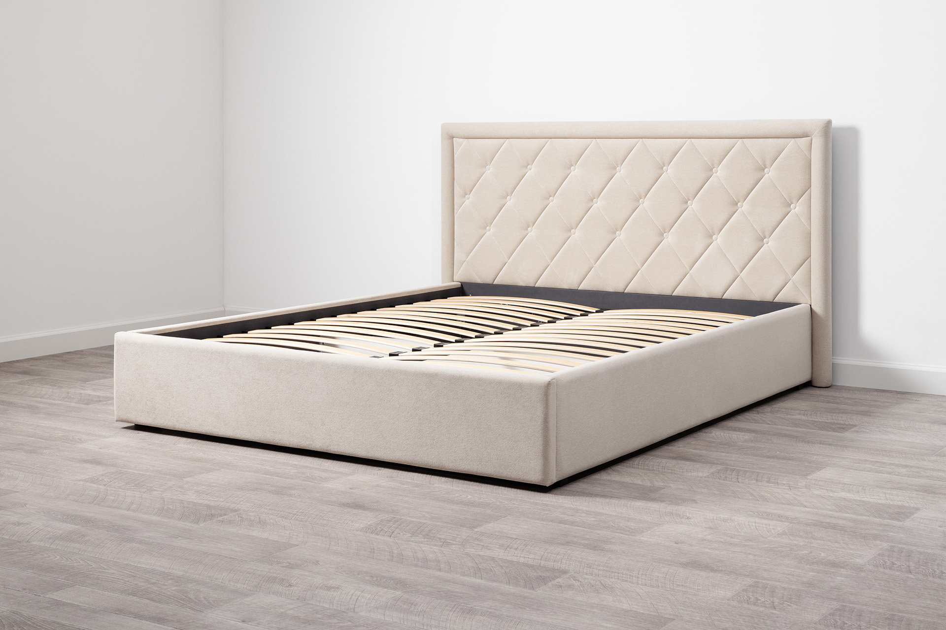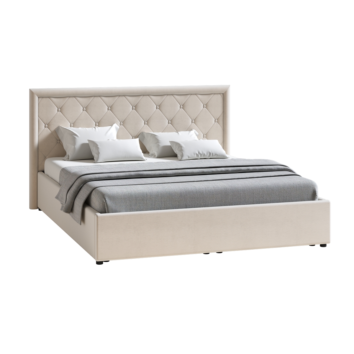 Кровать Марион 160 велюр OCEAN 002 бежевый с ортопедическим основанием и подъемным механизмом (спальное место 160 х 200)