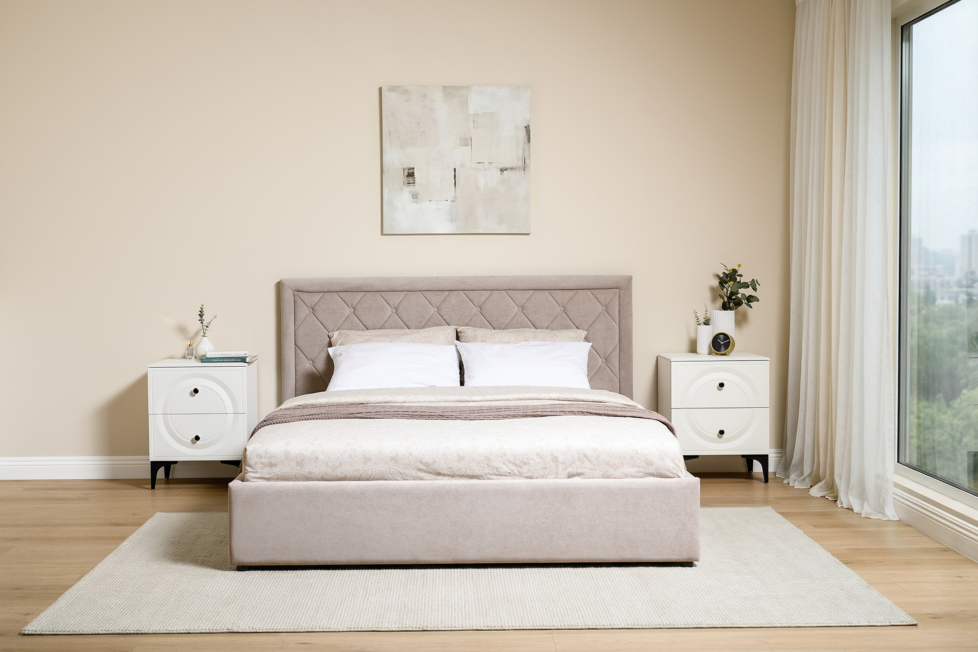 Кровать Марион — это идеальное сочетание стиля и комфорта. Элегантное изголовье оформлено стежкой в виде классической каретной стяжки, украшенной декоративными пуговицами, что придаёт изделию выразительный и утончённый вид. По всему периметру кровати проходит аккуратный валик, подчеркивающий геометрию и завершённость формы.