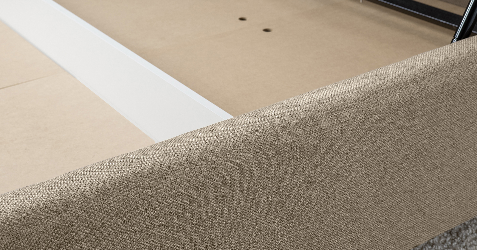 Кровать Миа 160 рогожка бежево-коричневый, кант желтовато-коричневый с ортопедическим основанием и подъемным механизмом