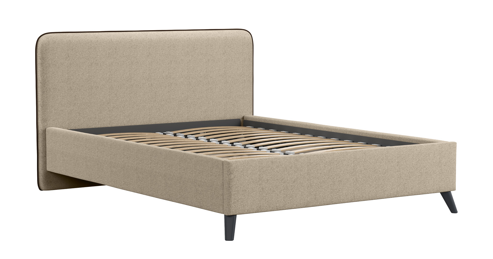 Кровать Миа 160 рогожка светло-бежевый, кант желтовато-коричневый с ортопедическим основанием и подъемным механизмом