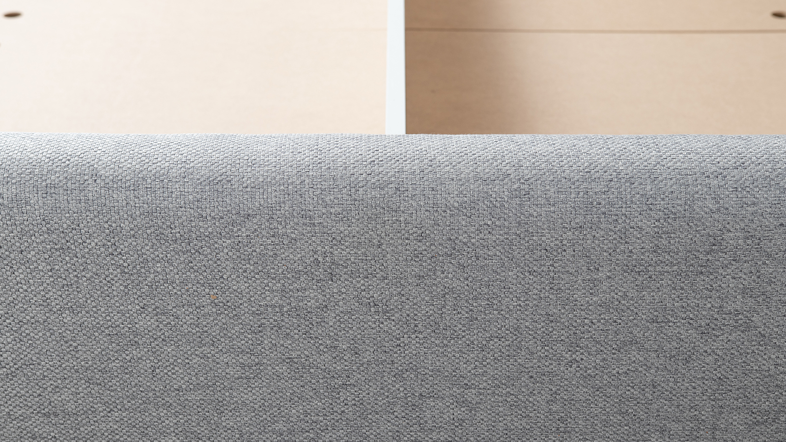 Основание кровати укомплектовано матрасодержателями. Жесткое кроватное дно из МДФ 6 мм. Задняя стенка изголовья выполнена в тех. ткани (спанбонд).