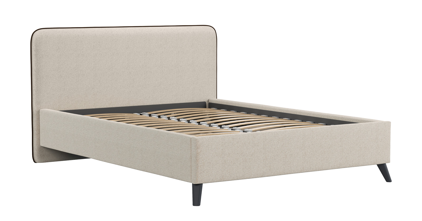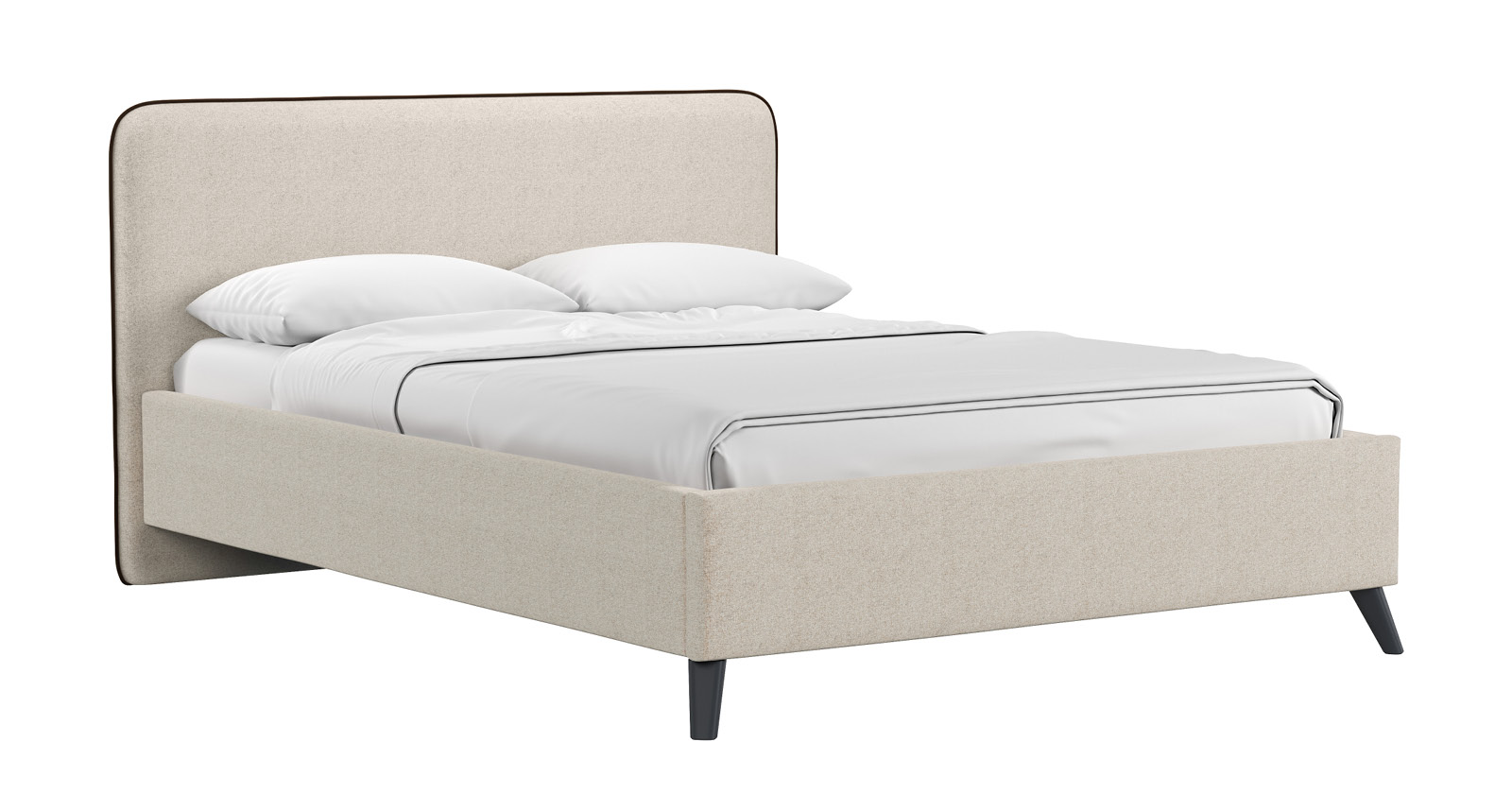 Кровать Миа 160 рогожка светло-бежевый, кант желтовато-коричневый с ортопедическим основанием и подъемным механизмом