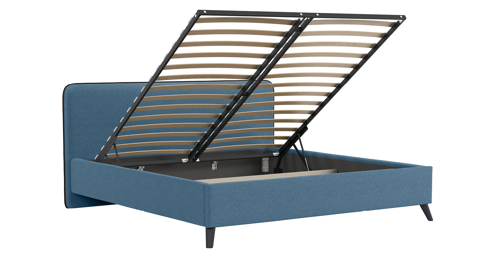 Кровать Миа 180 светло-синий, кант желтовато-коричневый с ортопедическим основанием и подъемным механизмом