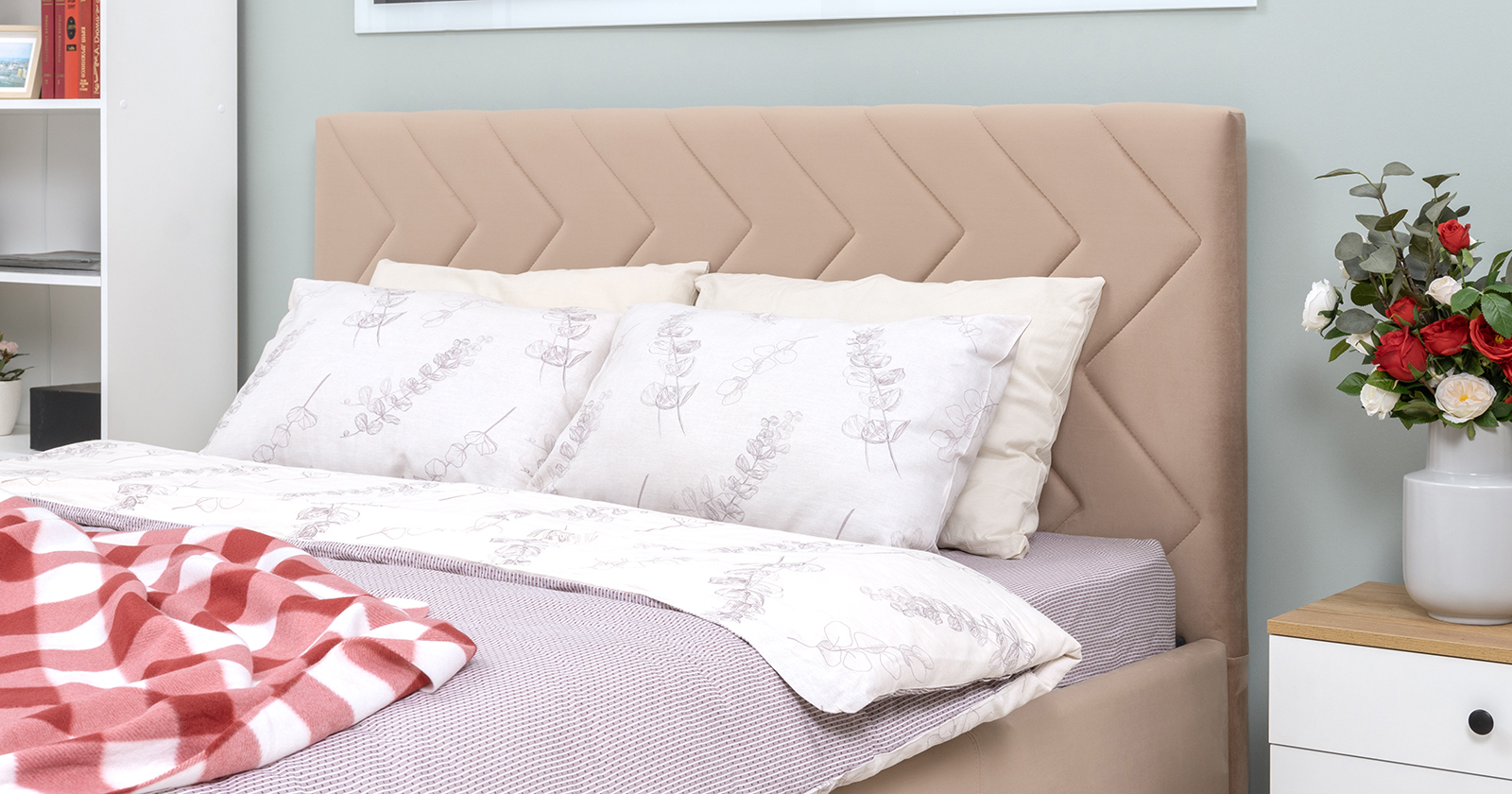 Кровать Милана 180 велюр бежевый кофейный с ортопедическим основанием и подъемным механизмом