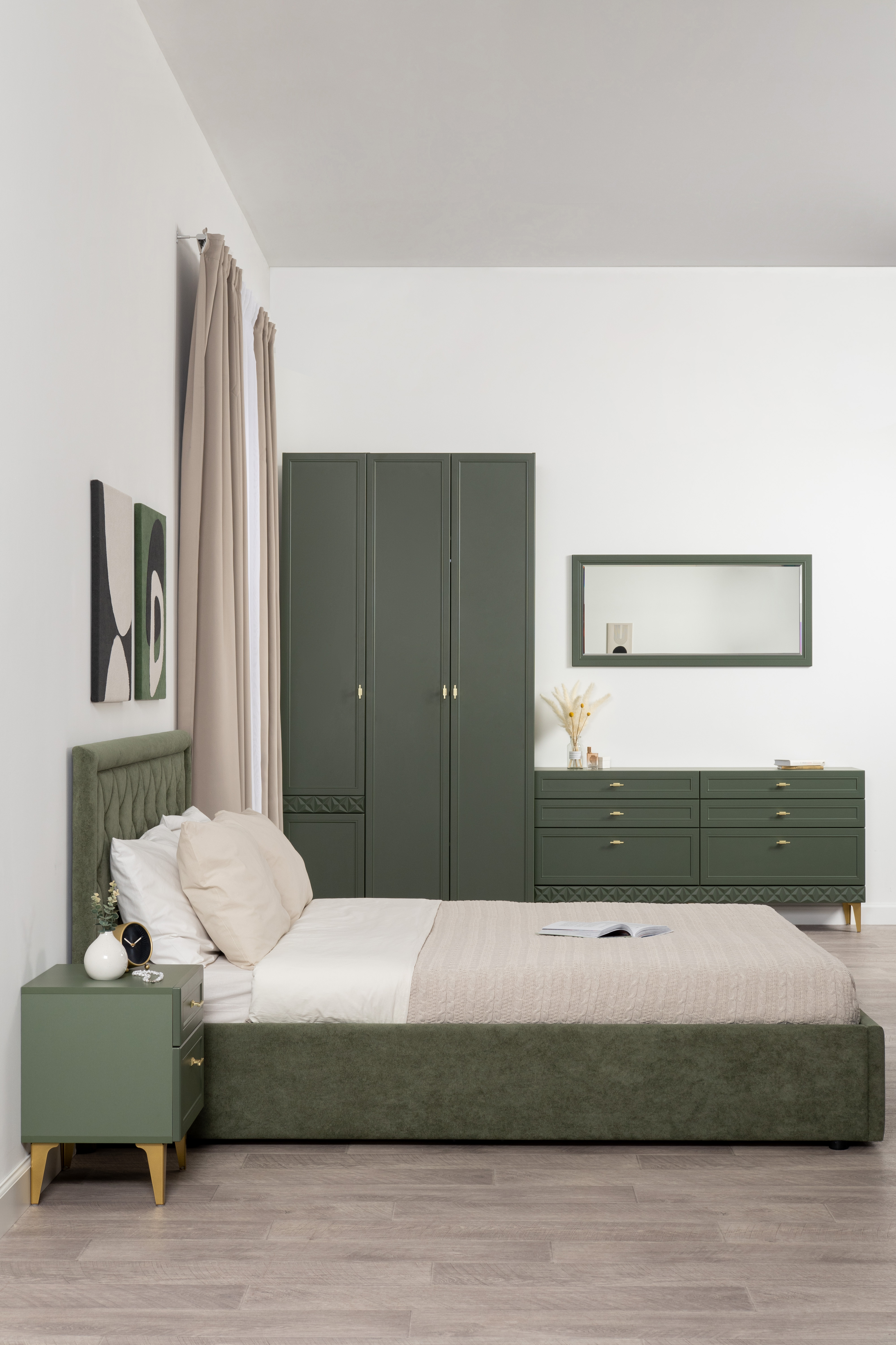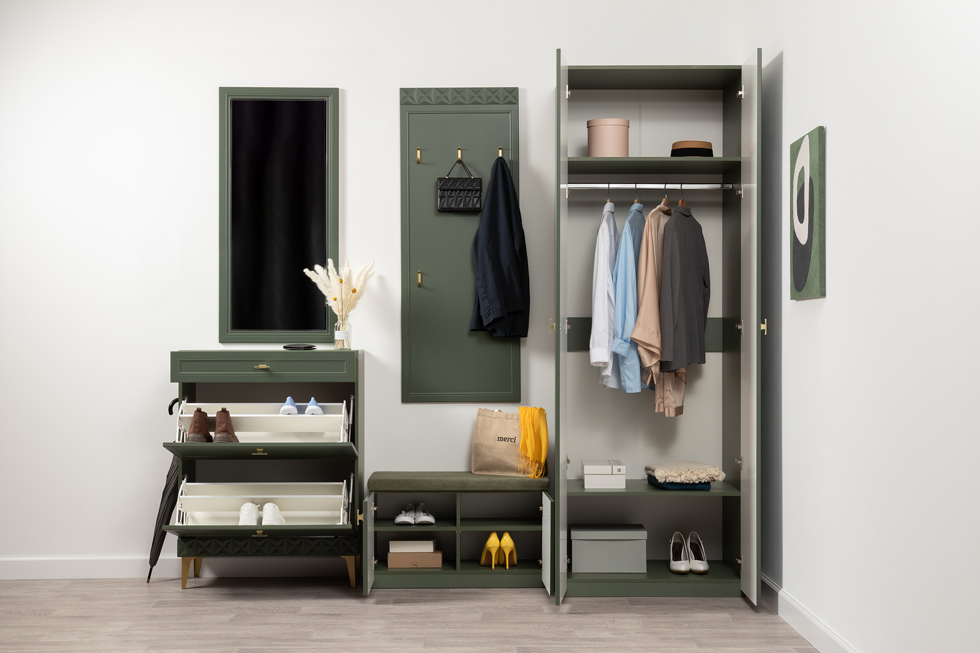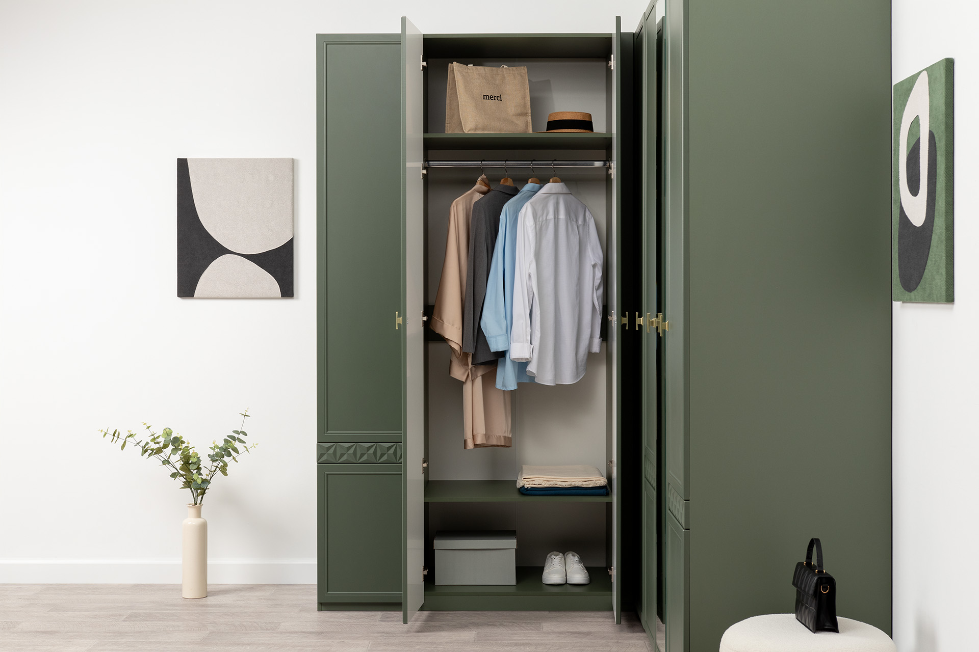 Шкаф двустворчатый Марион 16.340.02 дымчатый зеленый K521, олива шагрень AG 1050 ПВХ