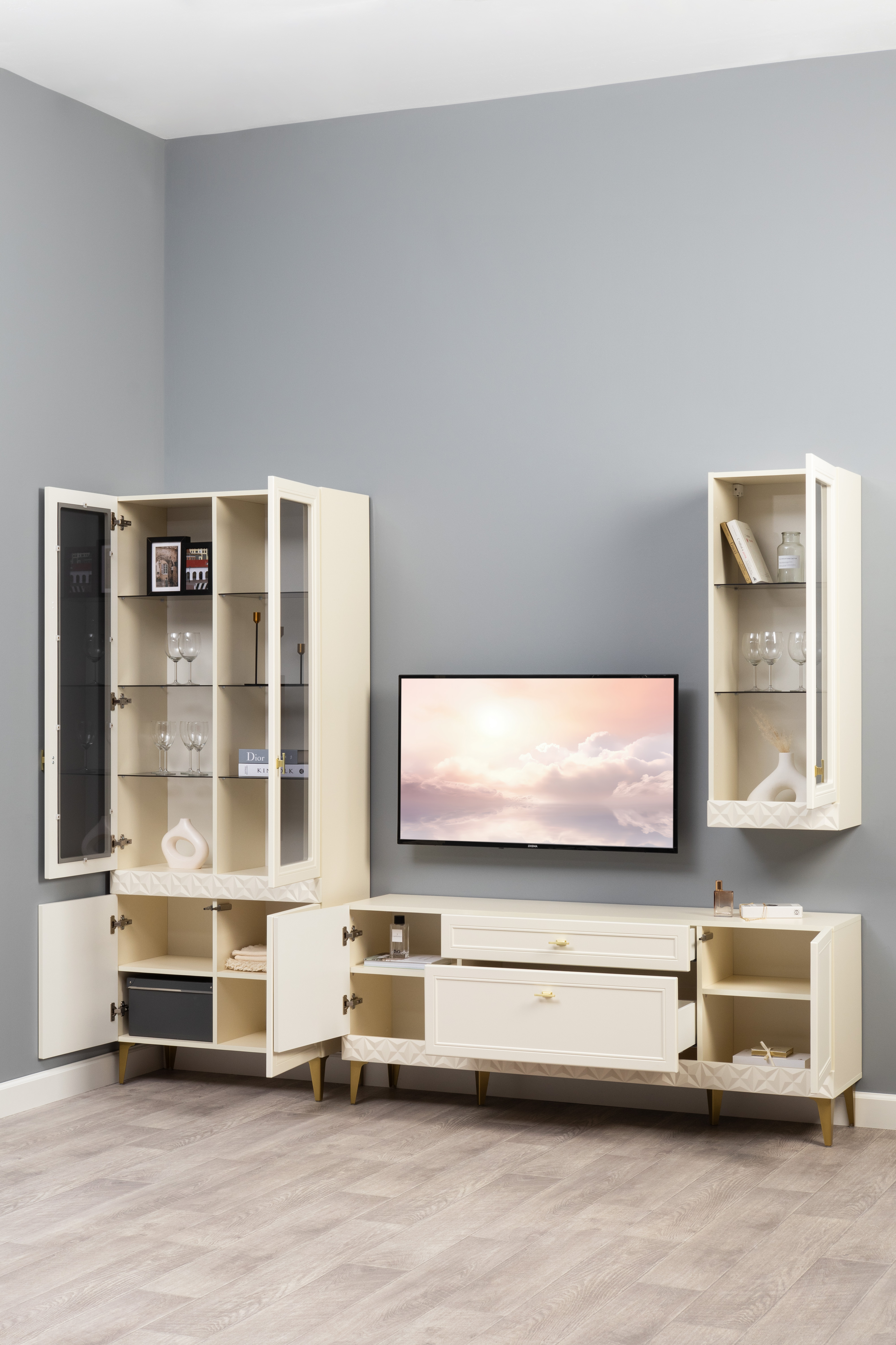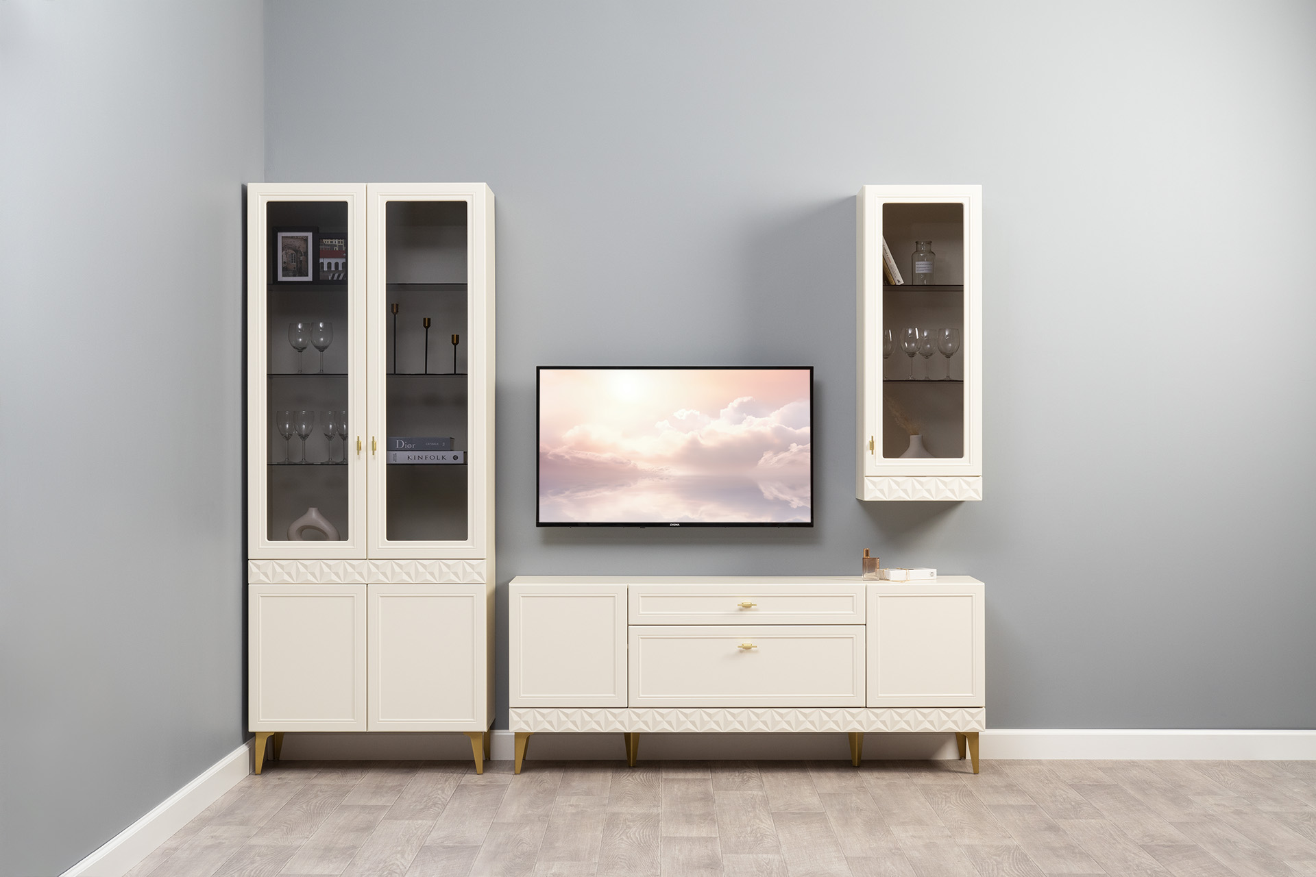 Шкаф-витрина Марион 16.397.01 слоновая кость С341 PE, слоновая кость 6898 ПВХ (собирается на любую сторону)