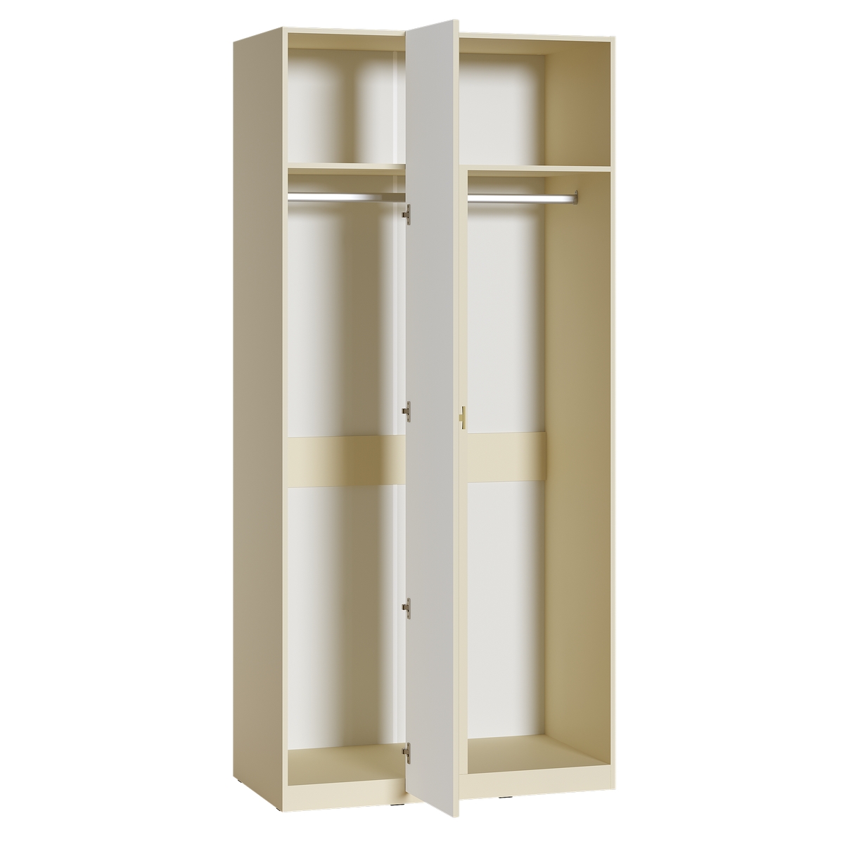 Изящные линии, глубокая фрезеровка фасадов из МДФ и благородные оттенки. Утончённая «Слоновая кость» и изысканная «Олива Шагрень» с глубоким зелёным тоном — создают атмосферу уюта, тепла и благородства. Металлические ручки и опоры золотого цвета придают мебели утончённый блеск, а петли и направляющие с доводчиками обеспечивают плавное и бесшумное закрытие фасадов.