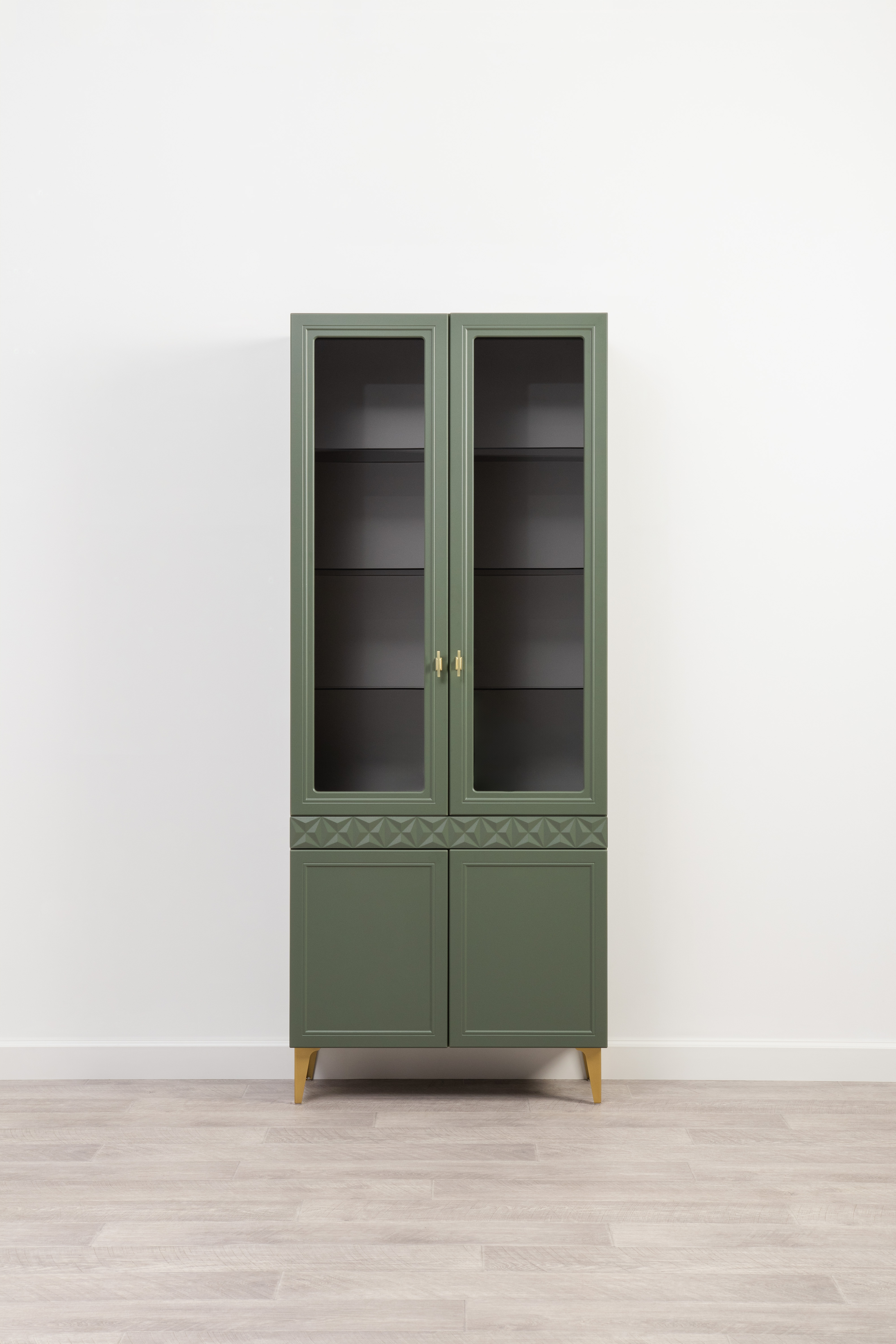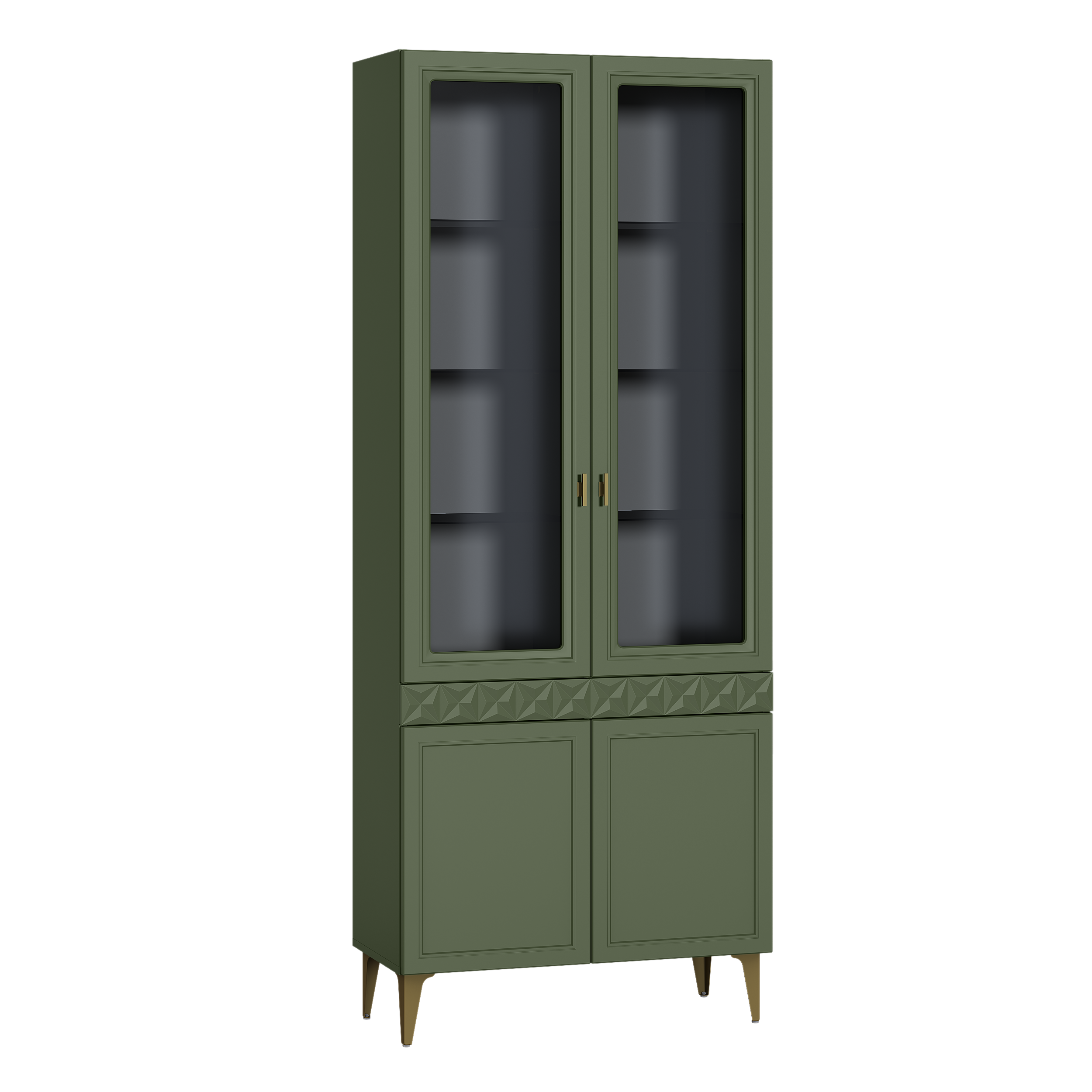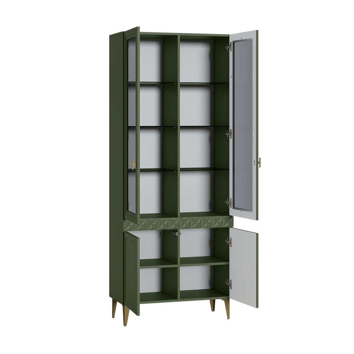 Шкаф-витрина Марион 16.397.02 дымчатый зеленый K521, олива шагрень AG 1050 ПВХ