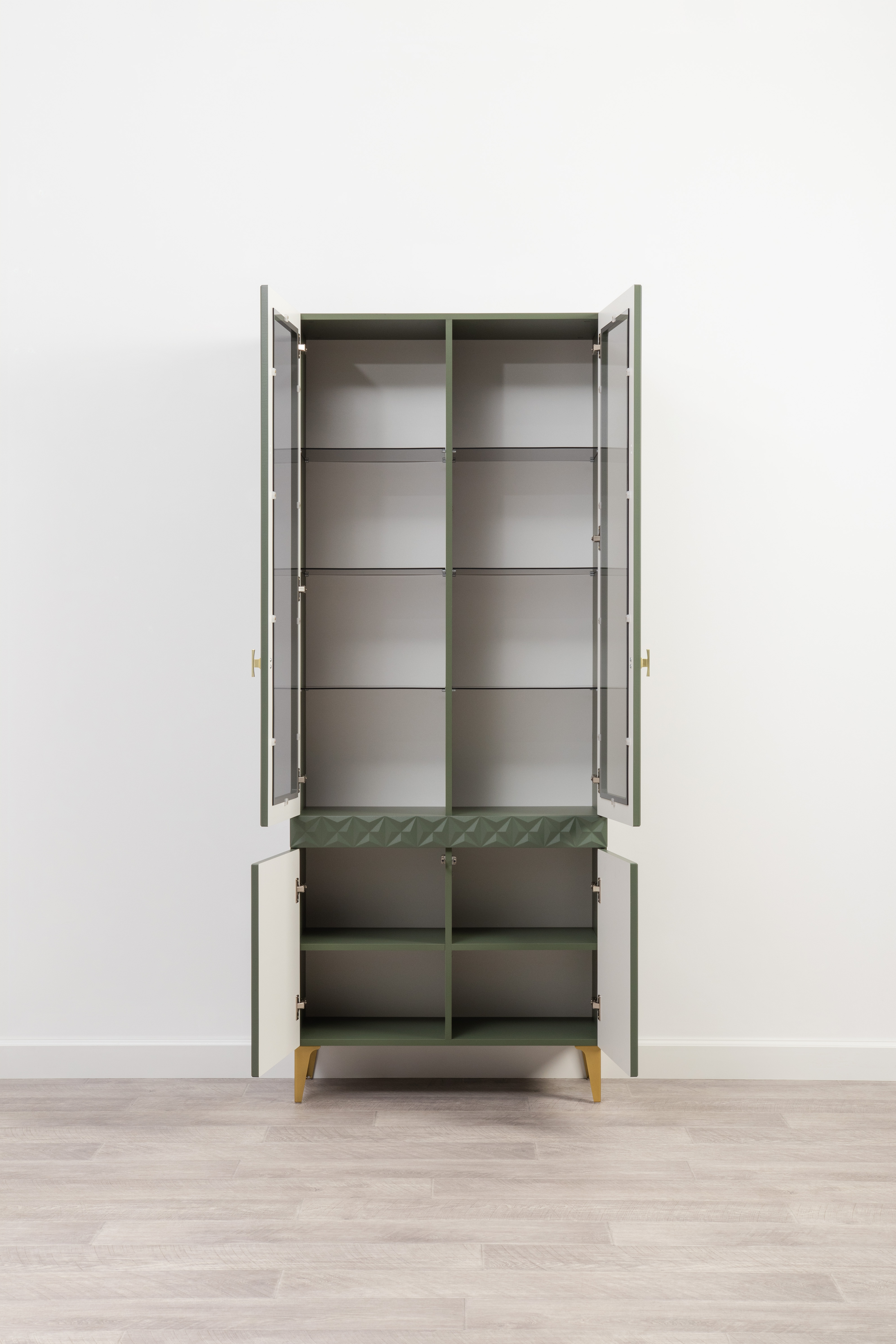 В коллекции представлены три типа витрин с тонированным закалённым стеклом, которые придают пространству лёгкость и свет. «Марион» — идеальное сочетание традиций и актуального дизайна в каждой детали.
