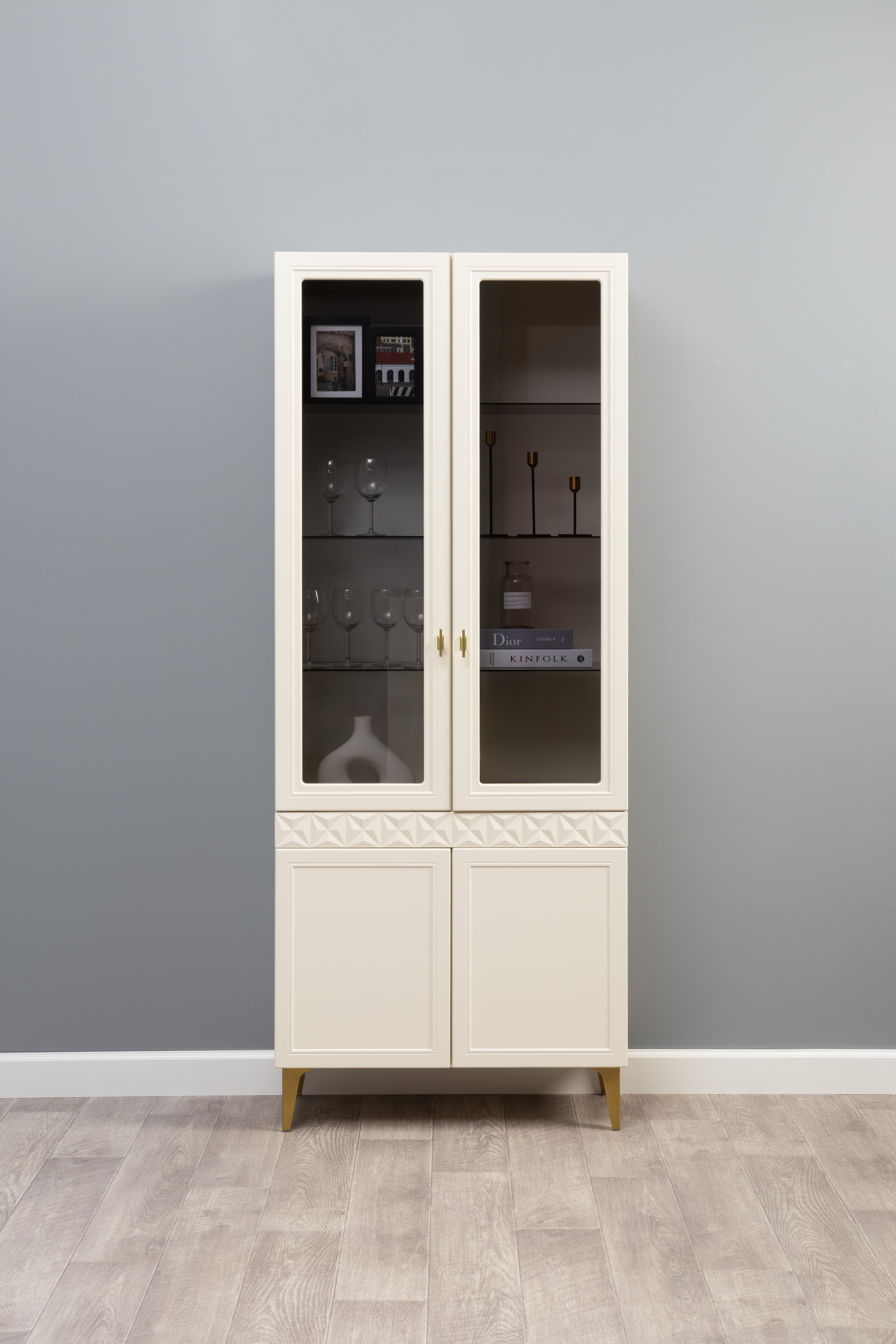 Шкаф-витрина Марион 16.397.02 слоновая кость С341 PE, слоновая кость 6898 ПВХ
