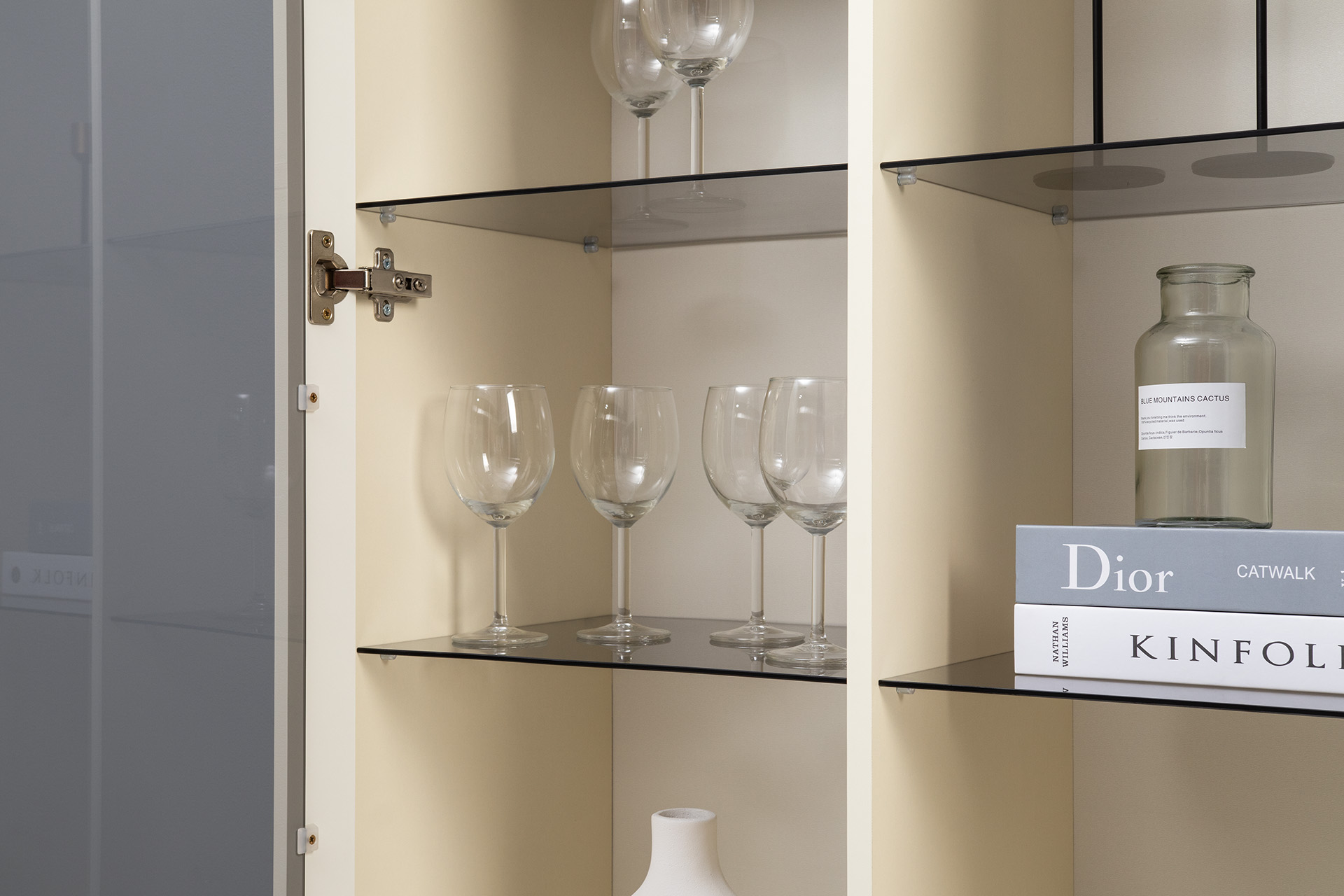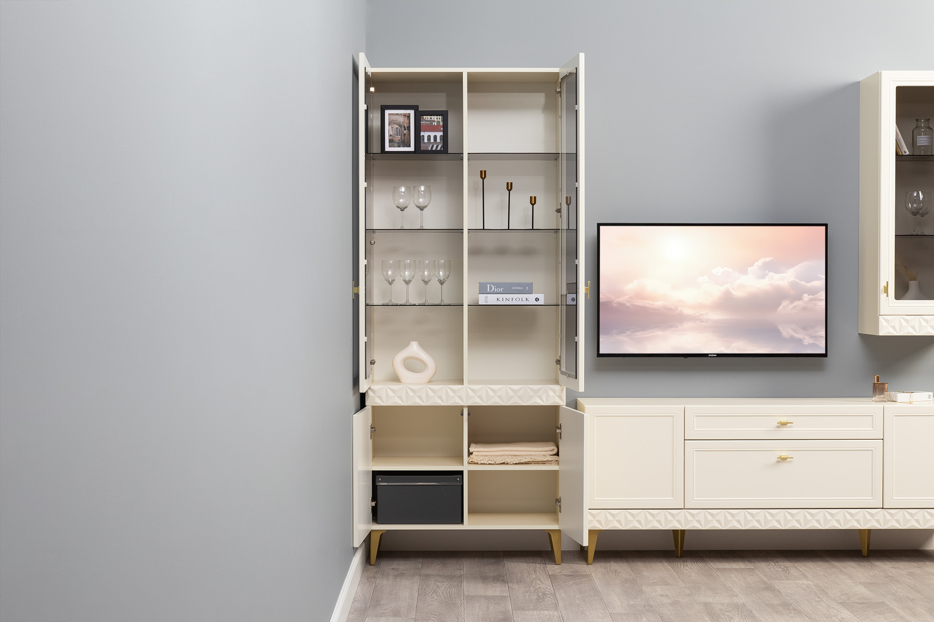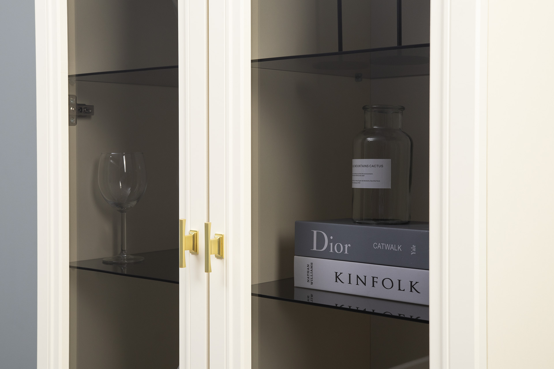 Шкаф-витрина Марион 16.397.01 слоновая кость С341 PE, слоновая кость 6898 ПВХ (собирается на любую сторону)