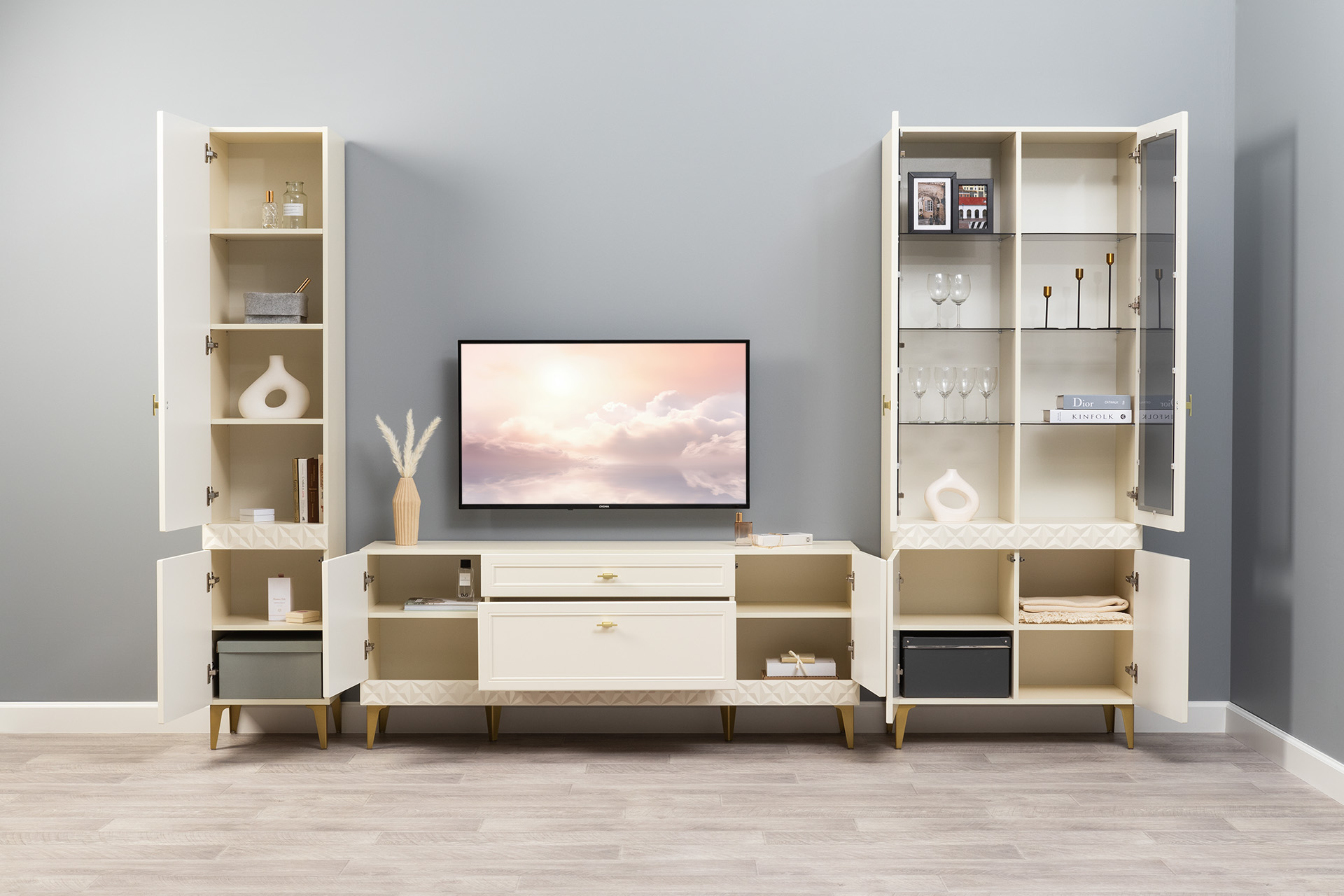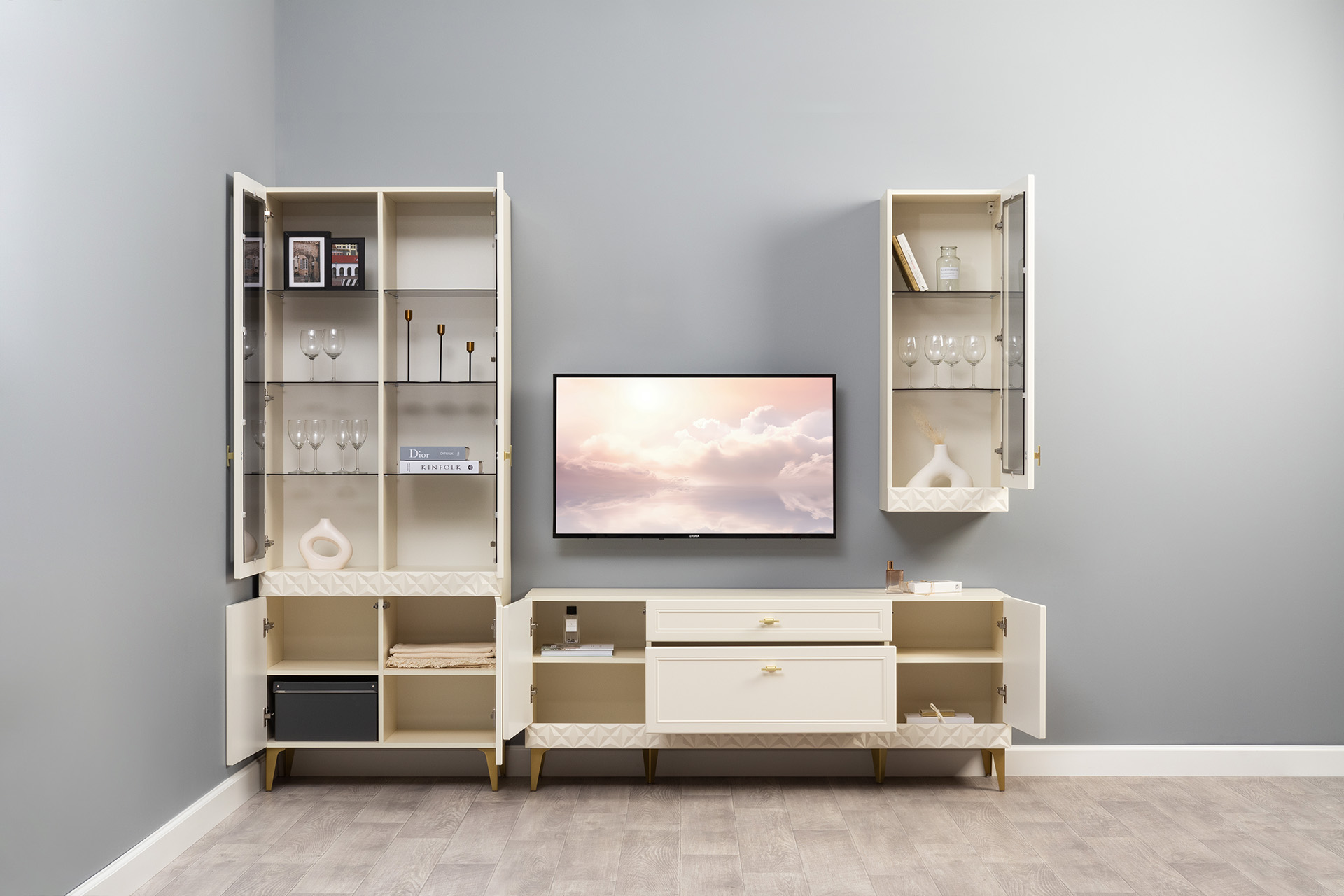 Шкаф комбинированный Бэль 10.04 белый премиум, дуб золотой CRAFT