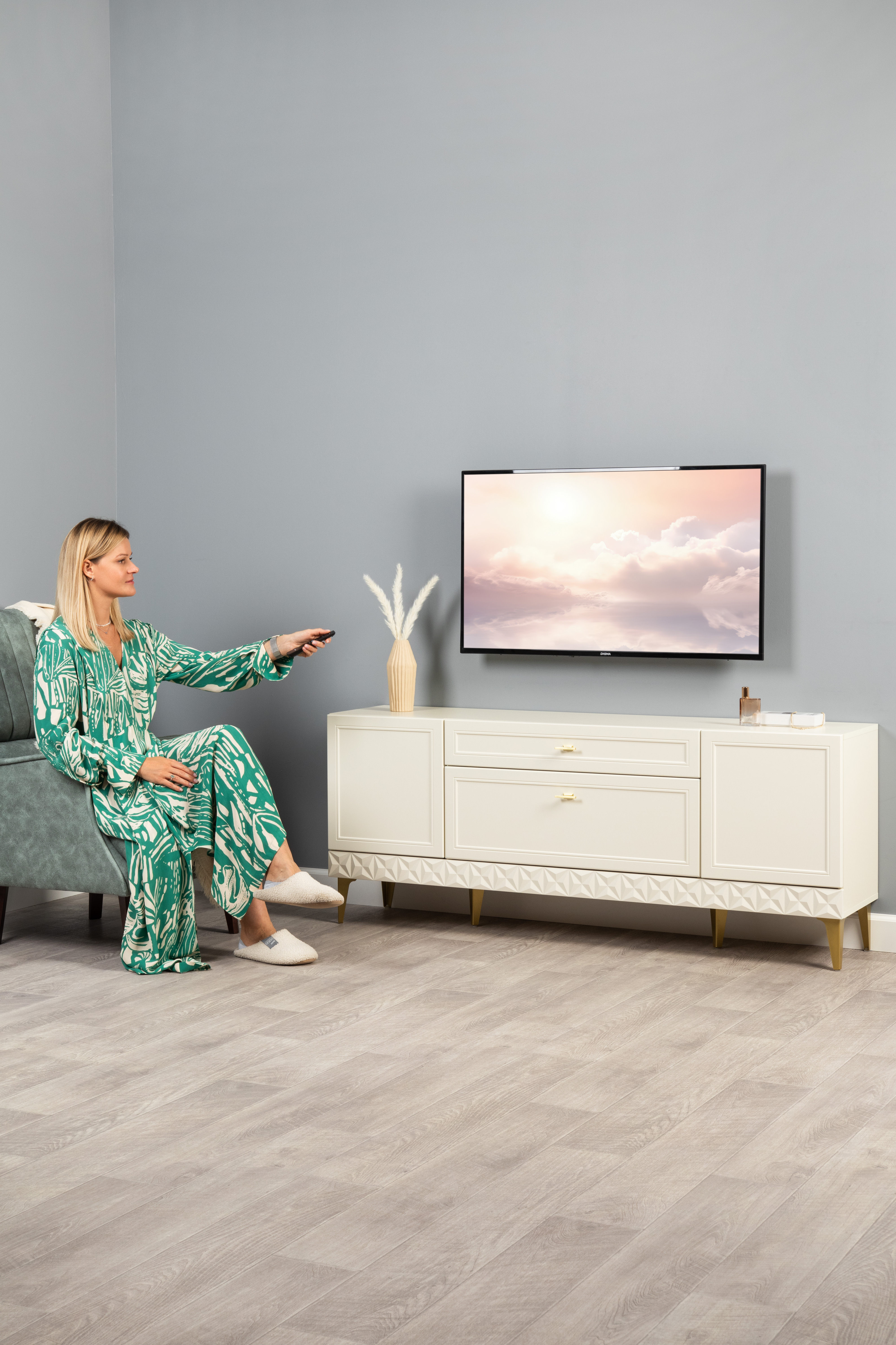 Комод Марион 16.249 дымчатый зеленый K521, олива шагрень AG 1050 ПВХ, белый PE шагрень