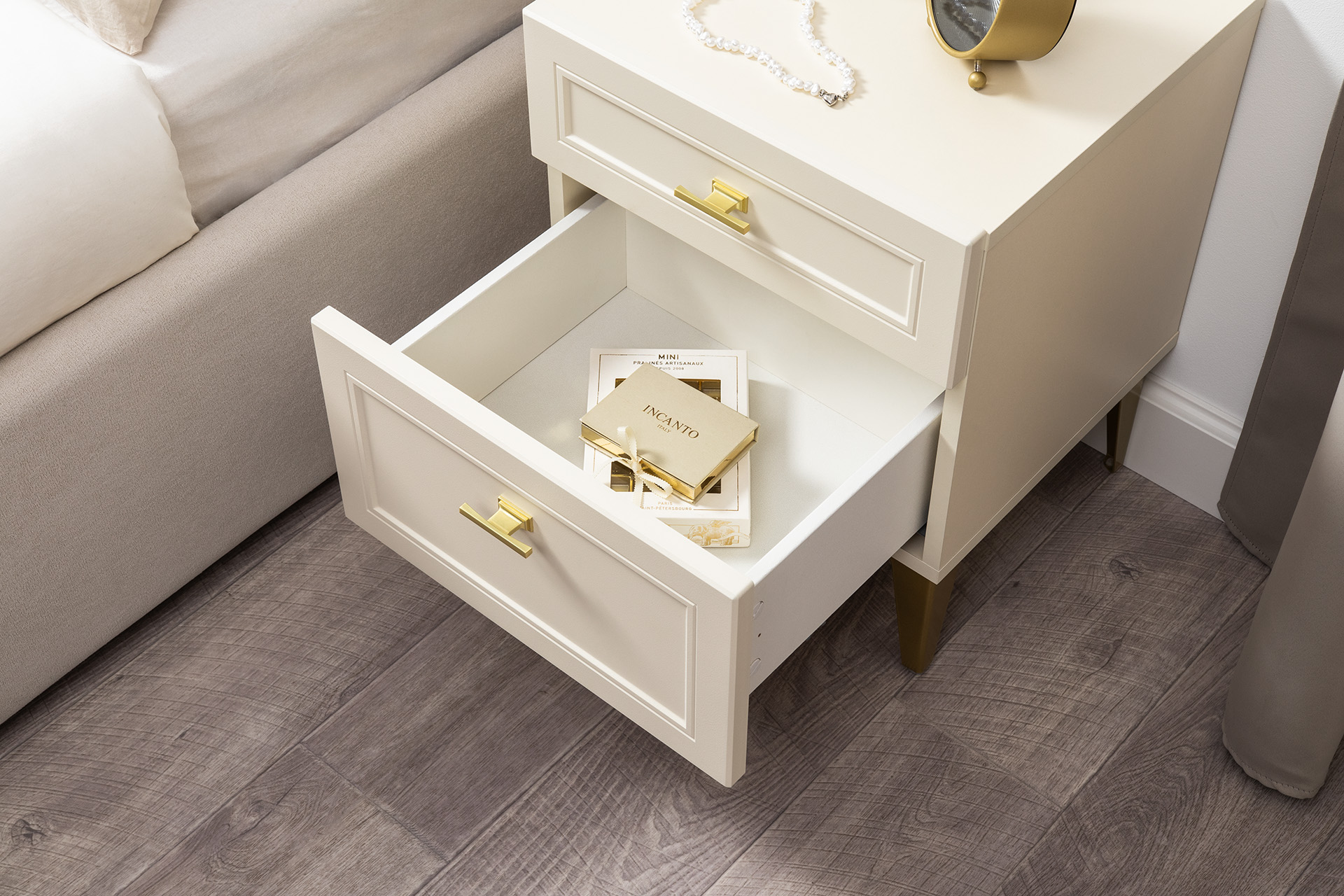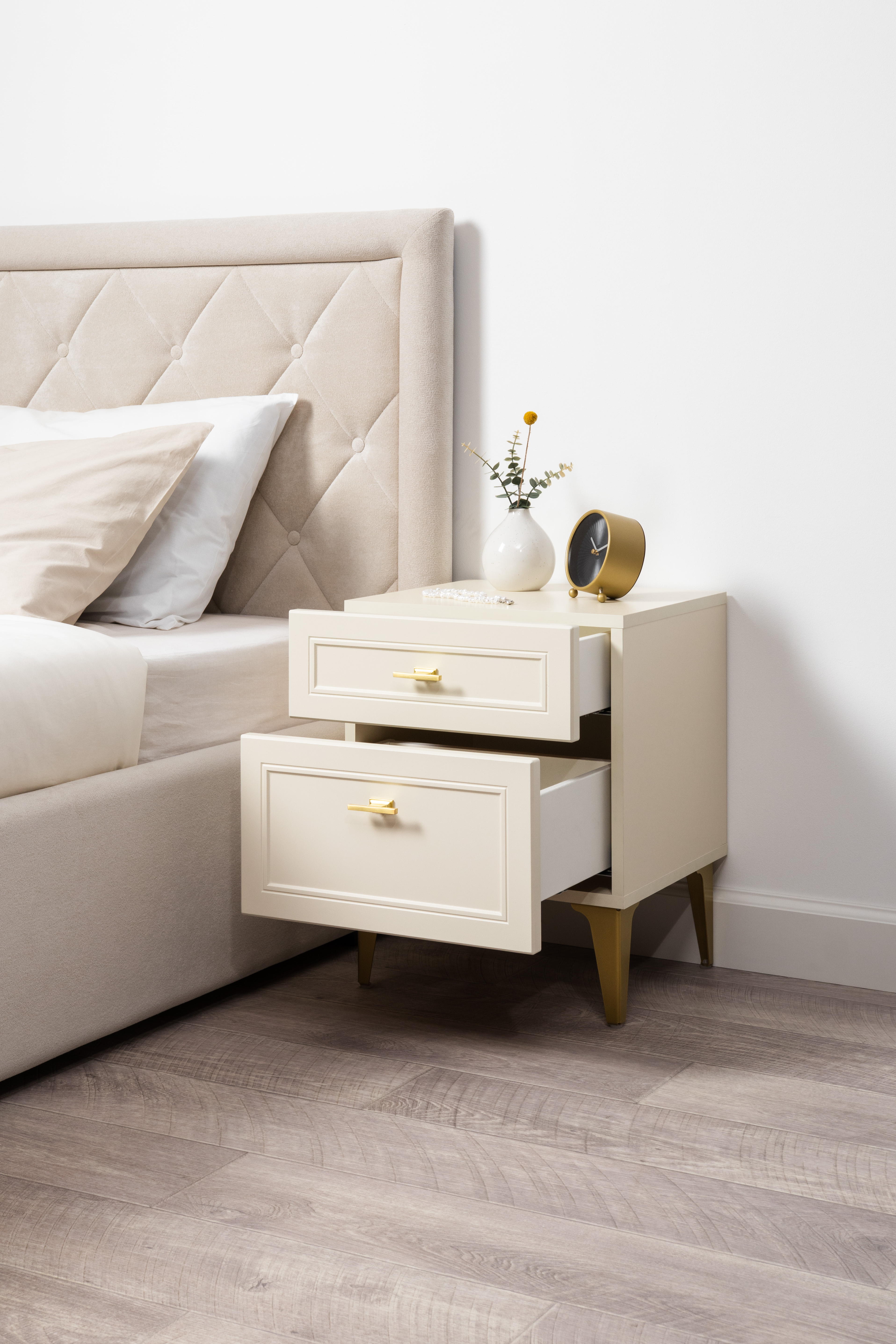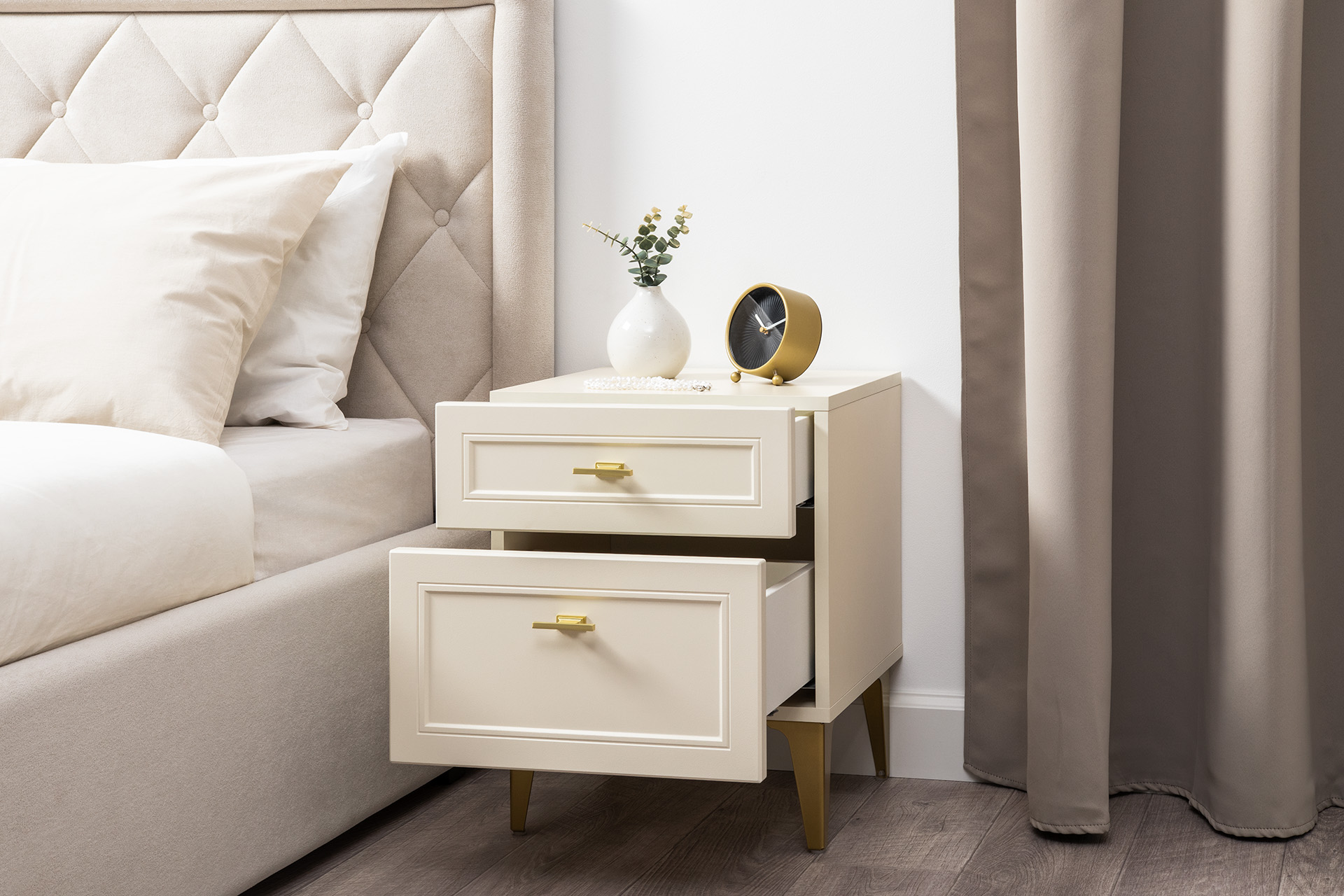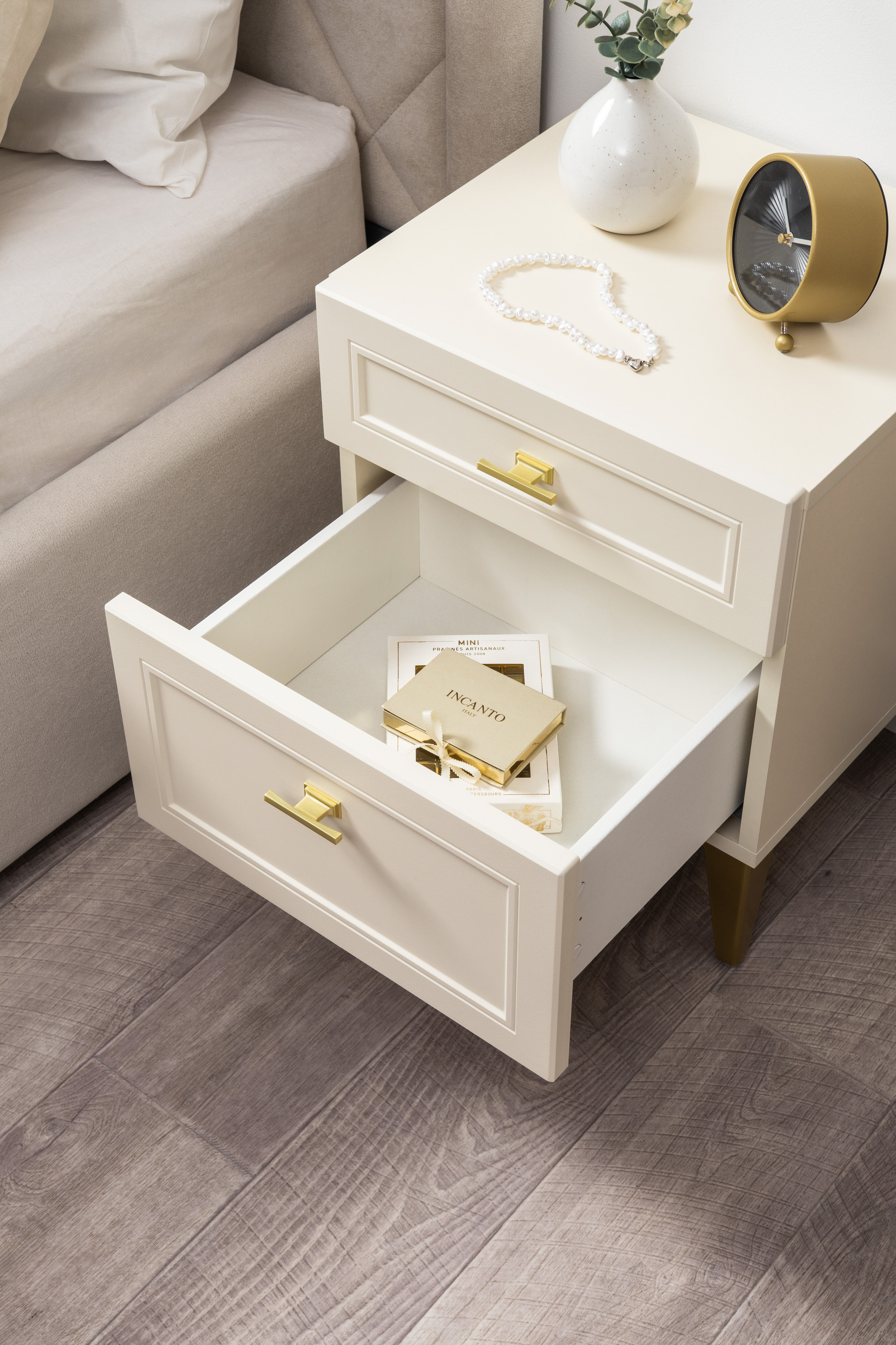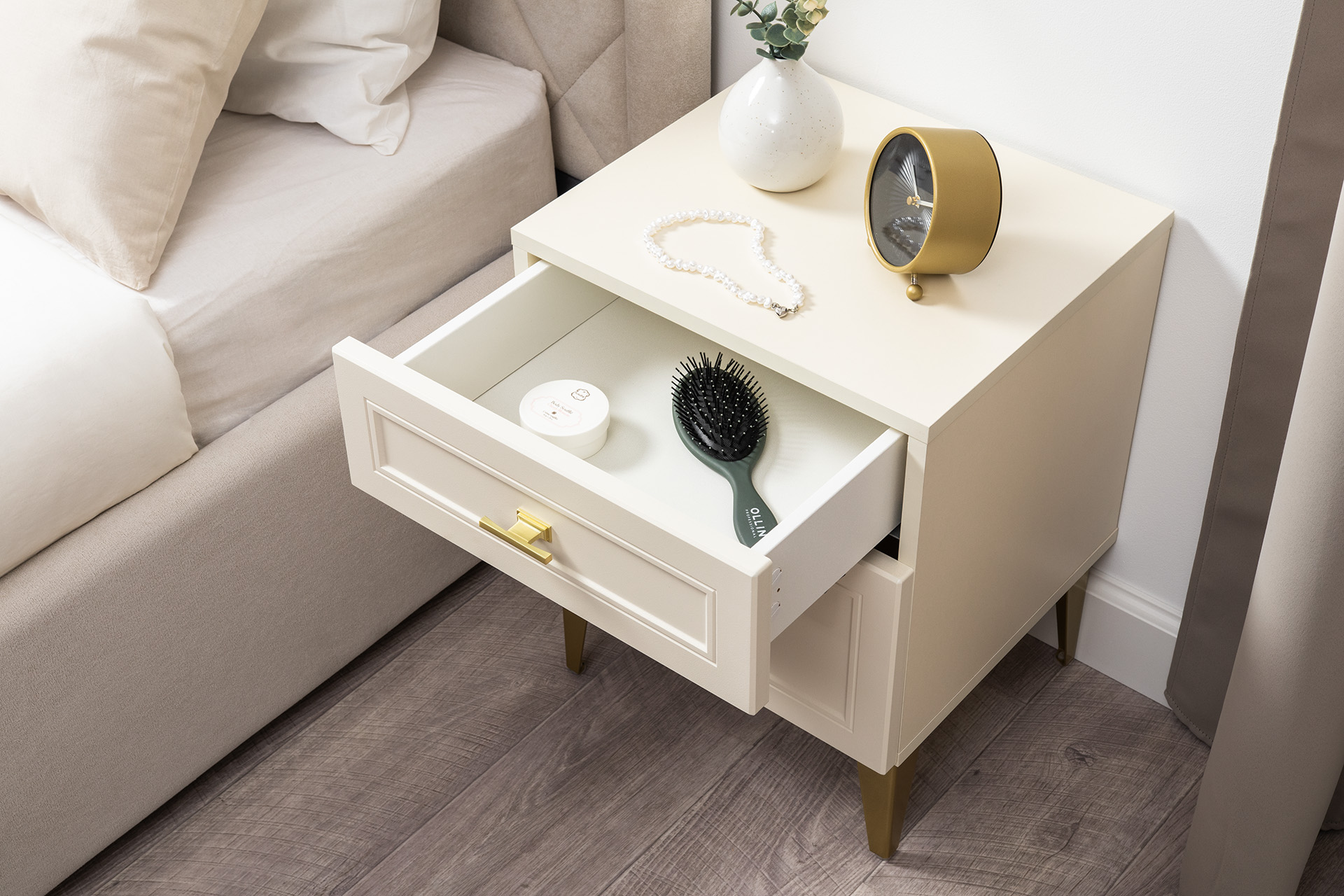 Тумба прикроватная Марион 16.14 слоновая кость С341 PE, слоновая кость 6898 ПВХ, белый PE шагрень